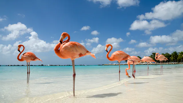 Aruba emmer af sol og caribisk energi. I Oranjestad mødes hollandsk kolonistil med afslappet øliv, farverige huse og livlige shoppinggader. Oplev øens smukke strande, ørkenlandskab og de berømte lyserøde flamingoer på Renaissance Island.