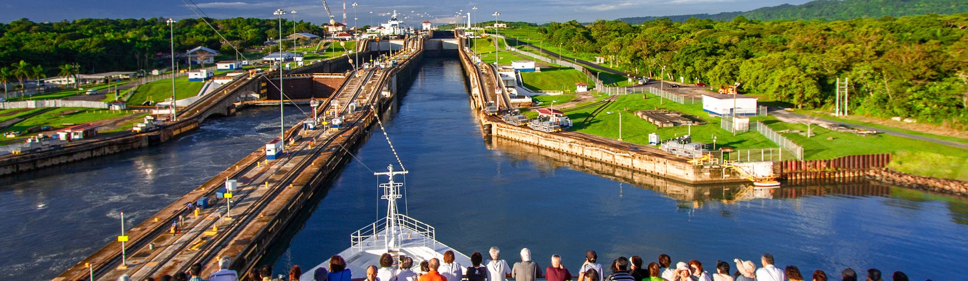Tag på krydstogt gennem Panamakanalen og oplev et menneskeskabt vidunder, hvor to oceaner forbindes af tropisk regnskov, eksotisk dyreliv og Caribiens azurblå bølger.