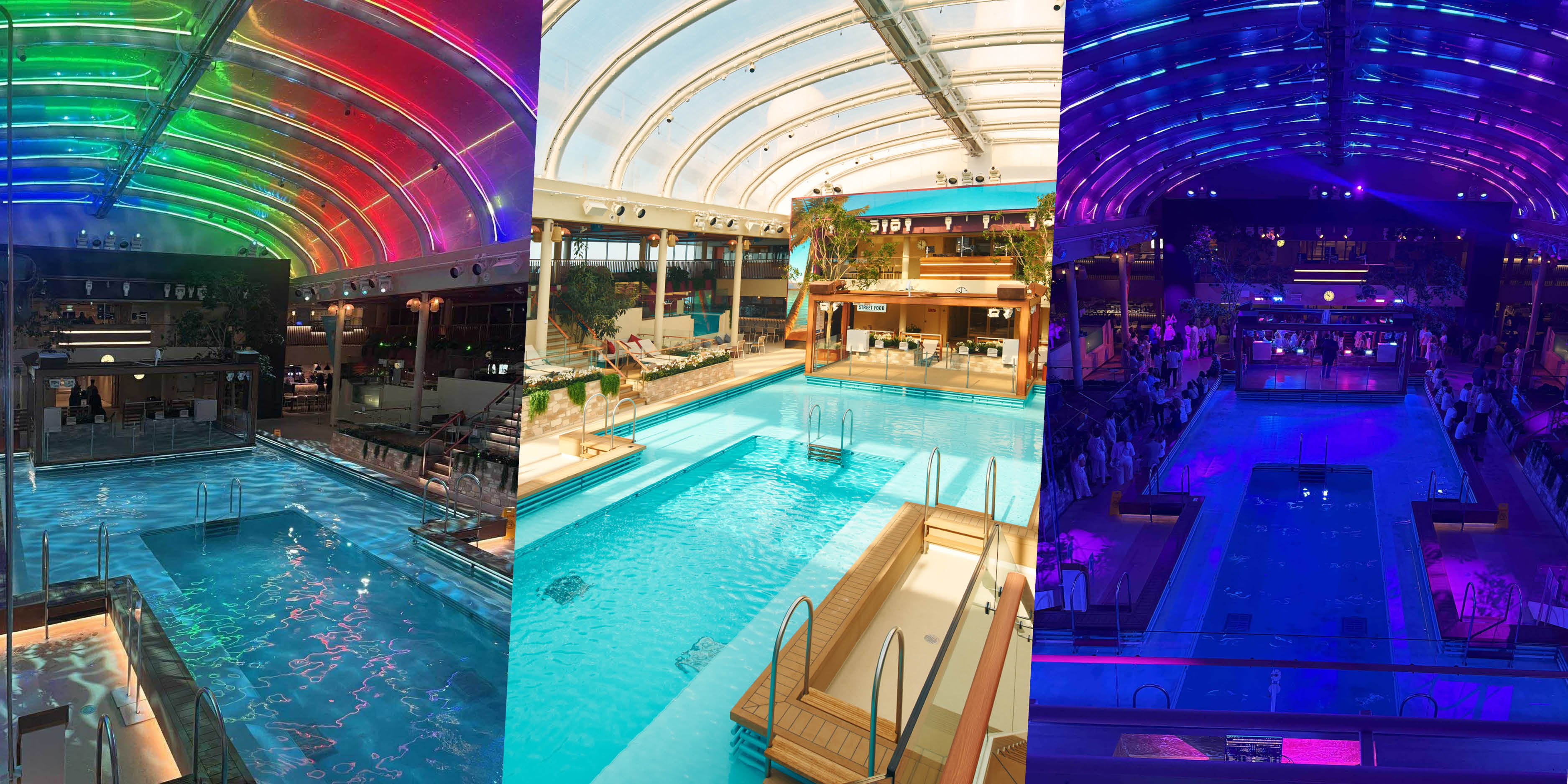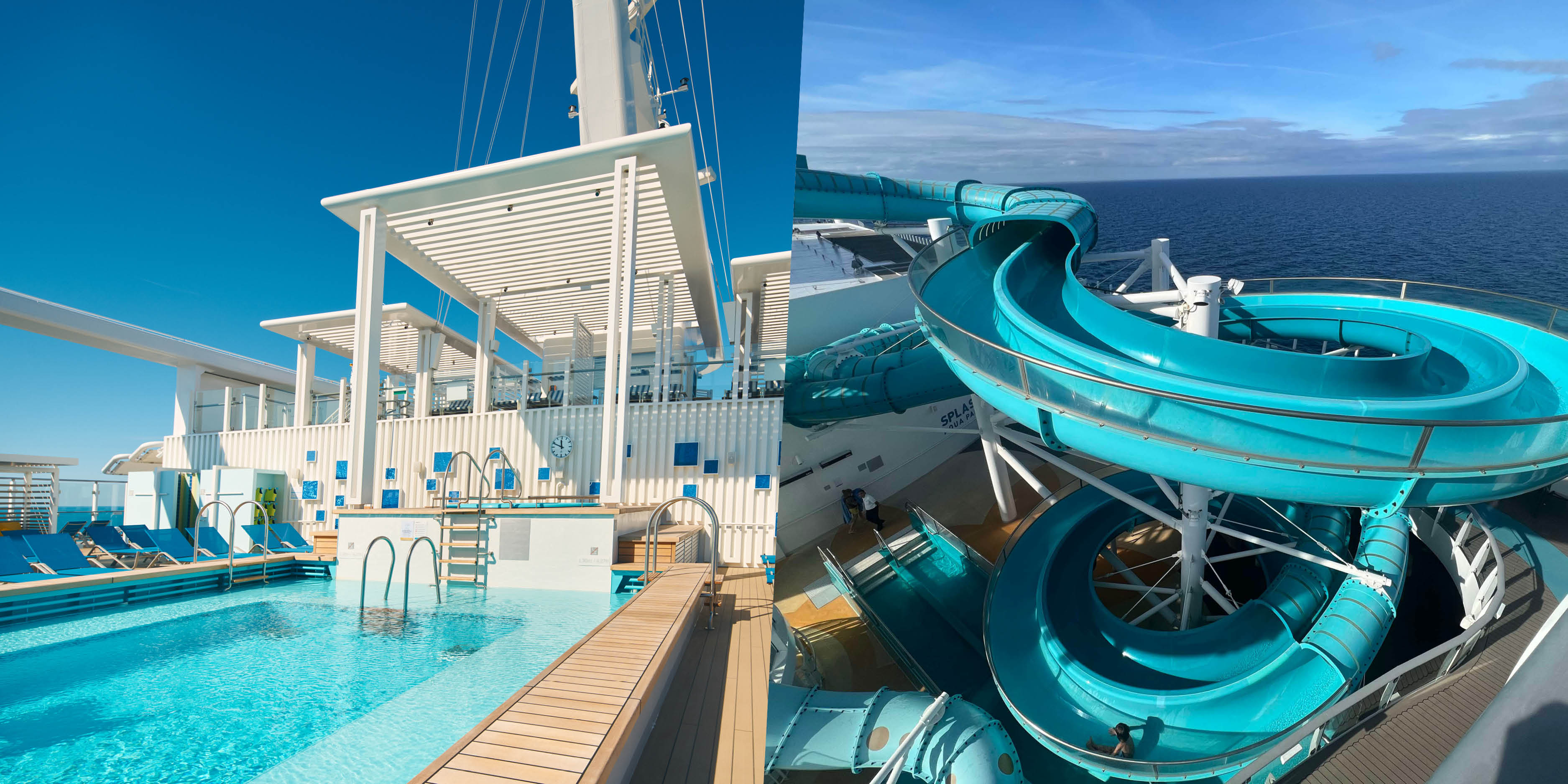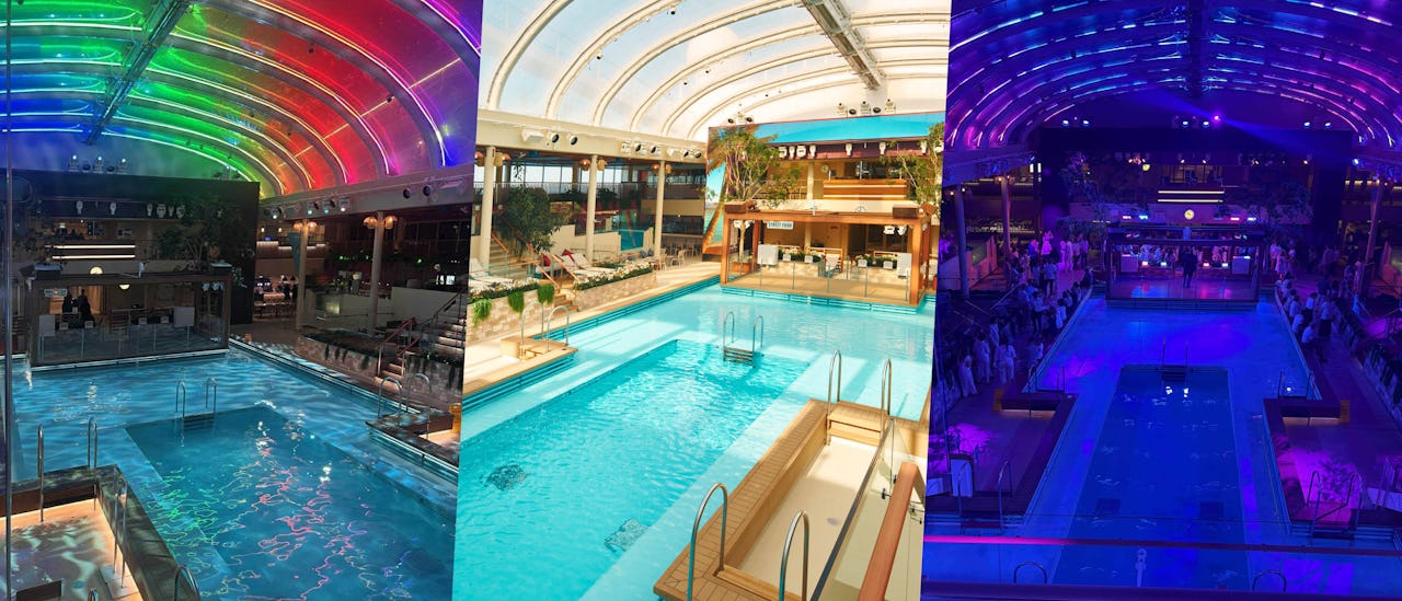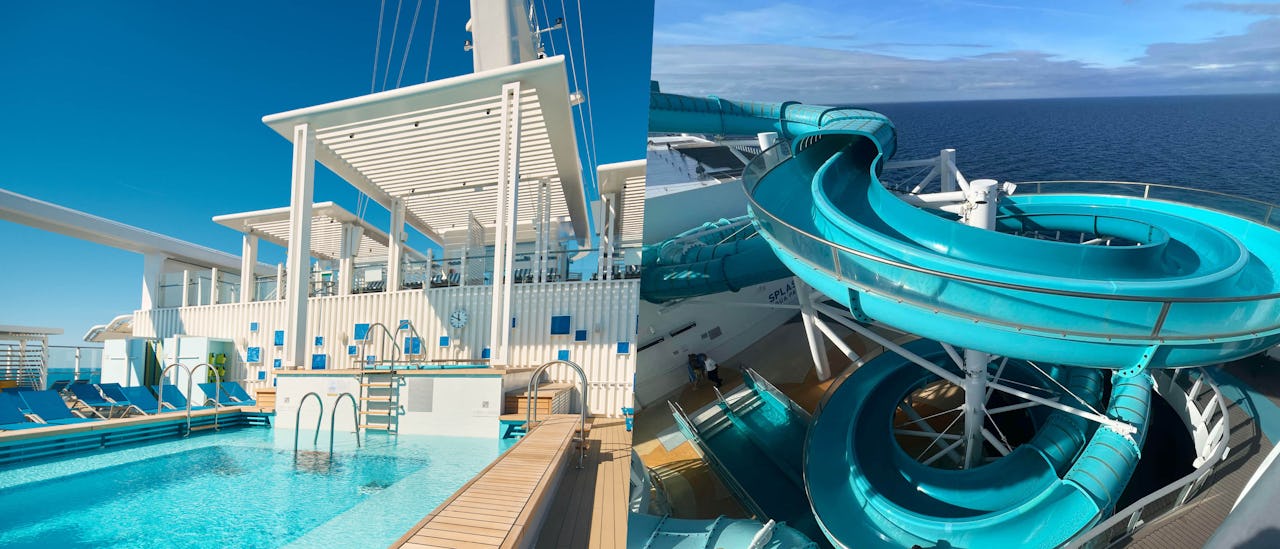 Ombord finder du 4 hovedpools både inden- og udendørs, flere hot tubs og et Splash Aqua Park med 4 vandrustjebaner. På pooldækket er der flere gange om dagen liv og underholdning – fra konkurrencer og dans til musik og sjove udfordringer, som alle er med til at skabe den helt rigtige feriestemning.