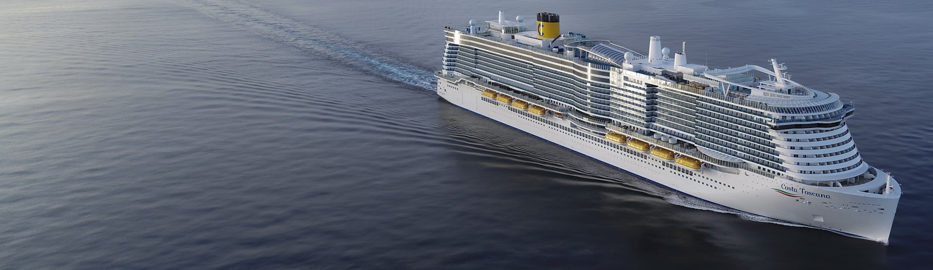 Costa Toscana er et moderne og imponerende krydstogtskib fra 2021, der byder på en livlig og farverig atmosfære. Den italienske inspiration er tydelig overalt – fra restauranter og underholdning til det storslåede centrale atrium. Ombord venter alt fra vandland og spa til teater og shopping, så skibet føles som en flydende ferieby fyldt med oplevelser og områder, der bare venter på at blive udforsket.
