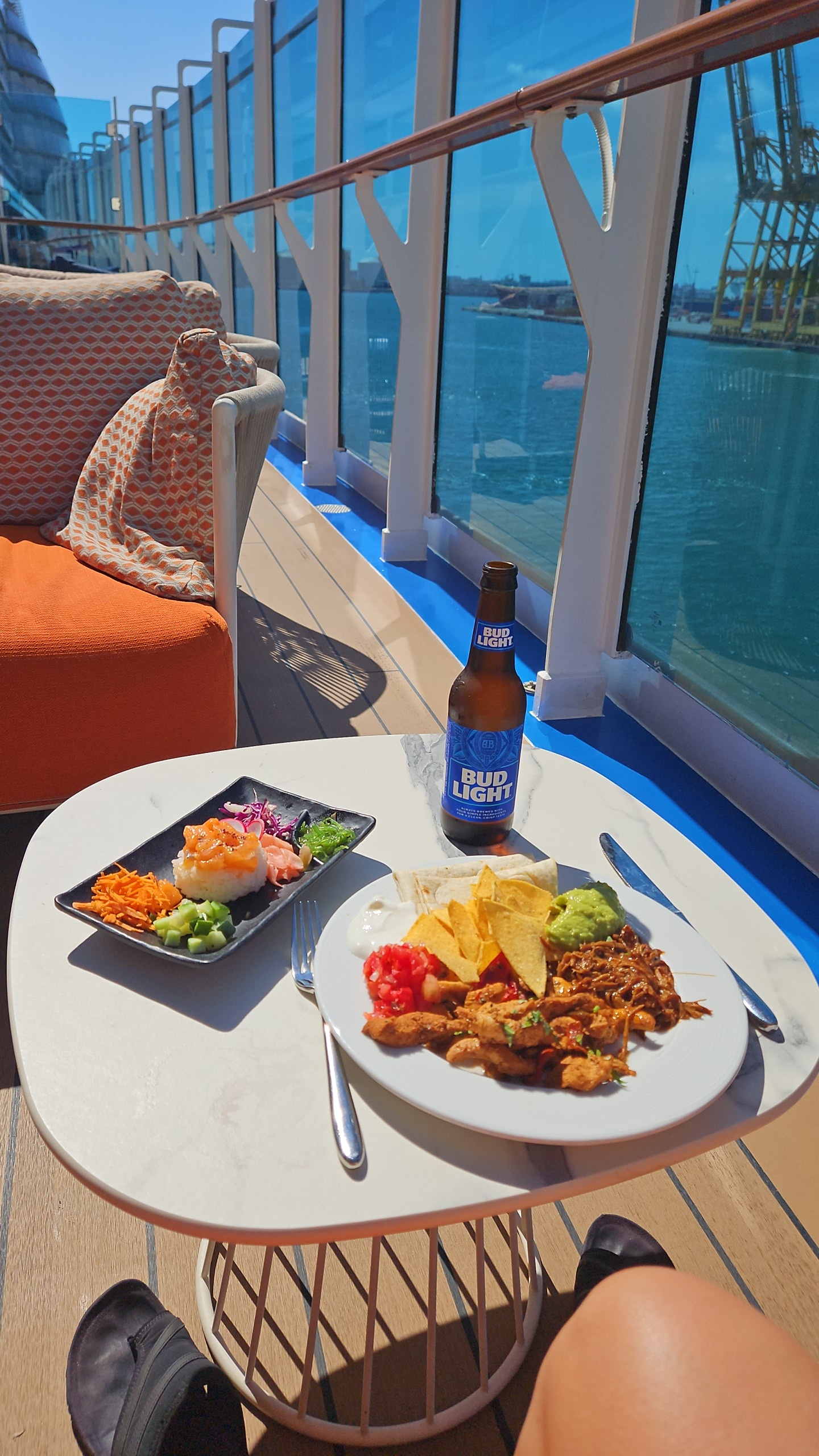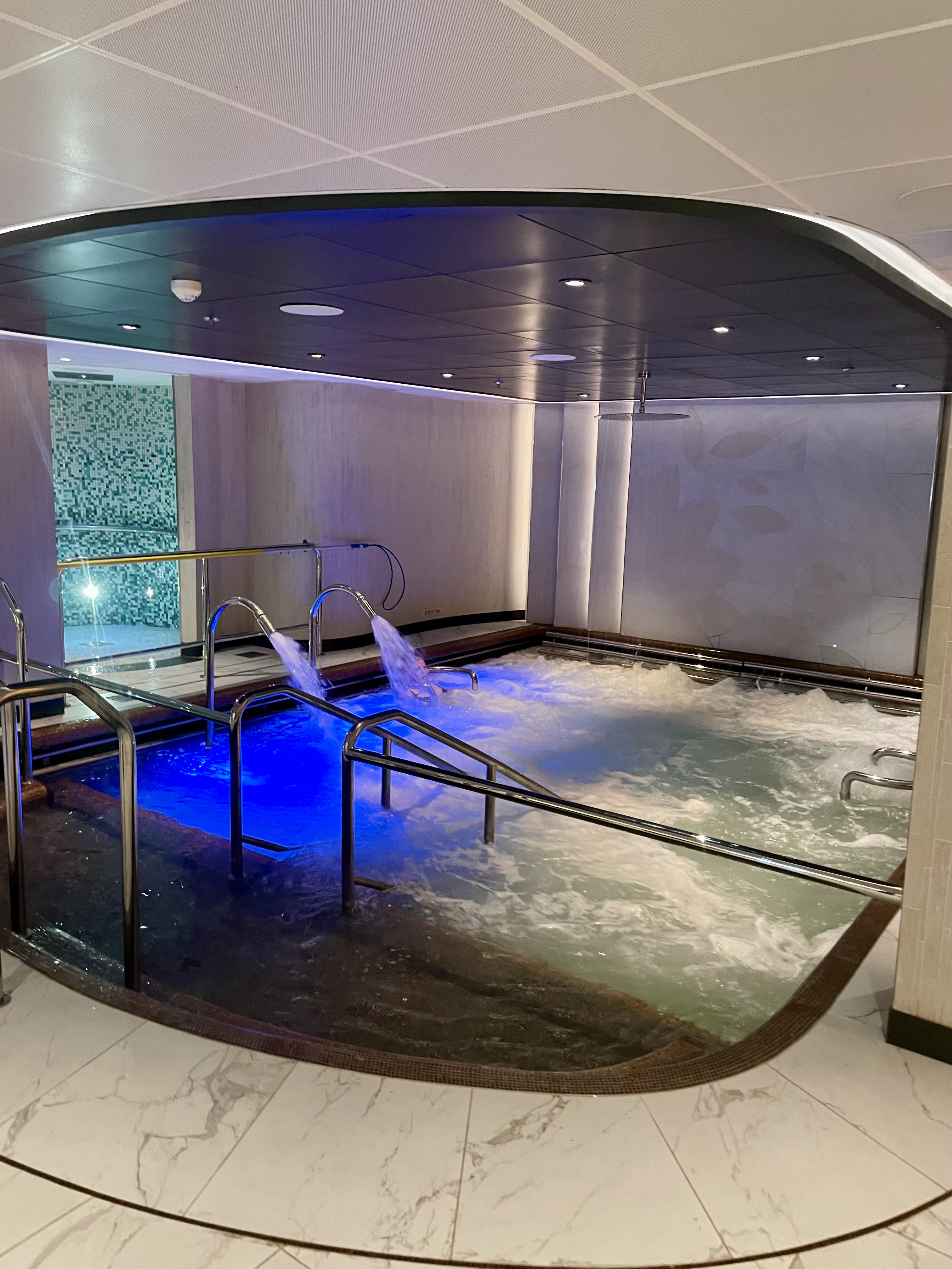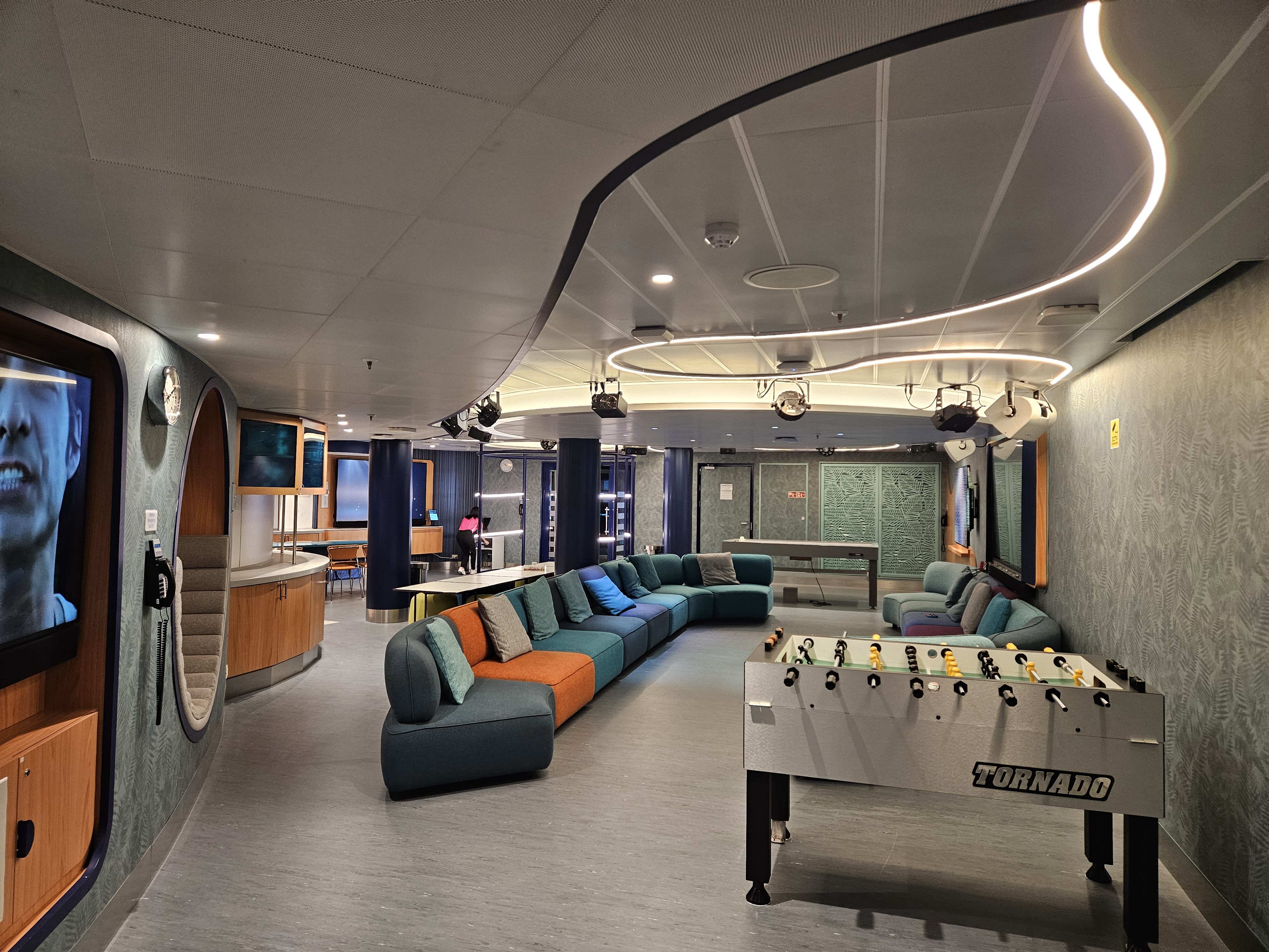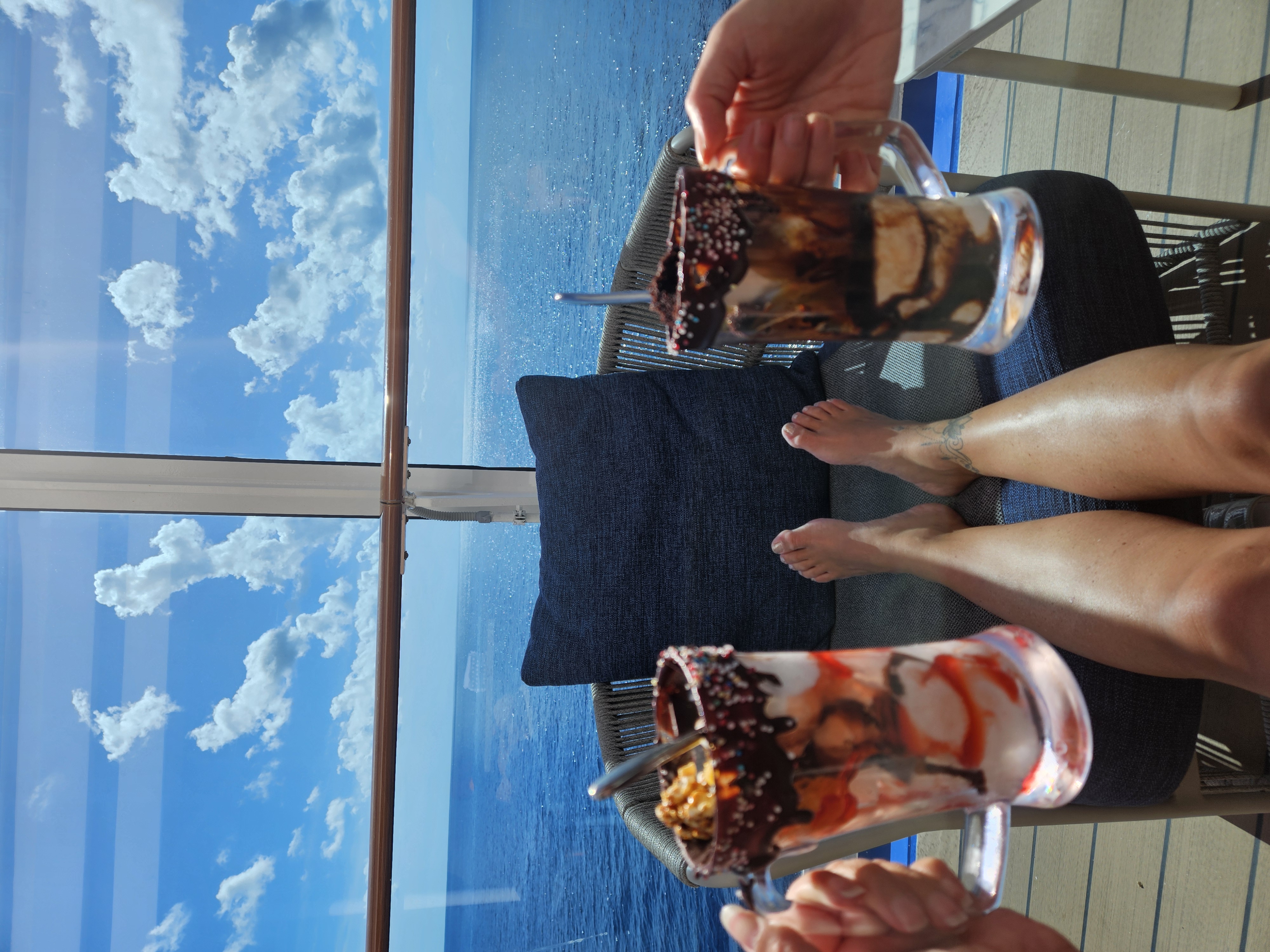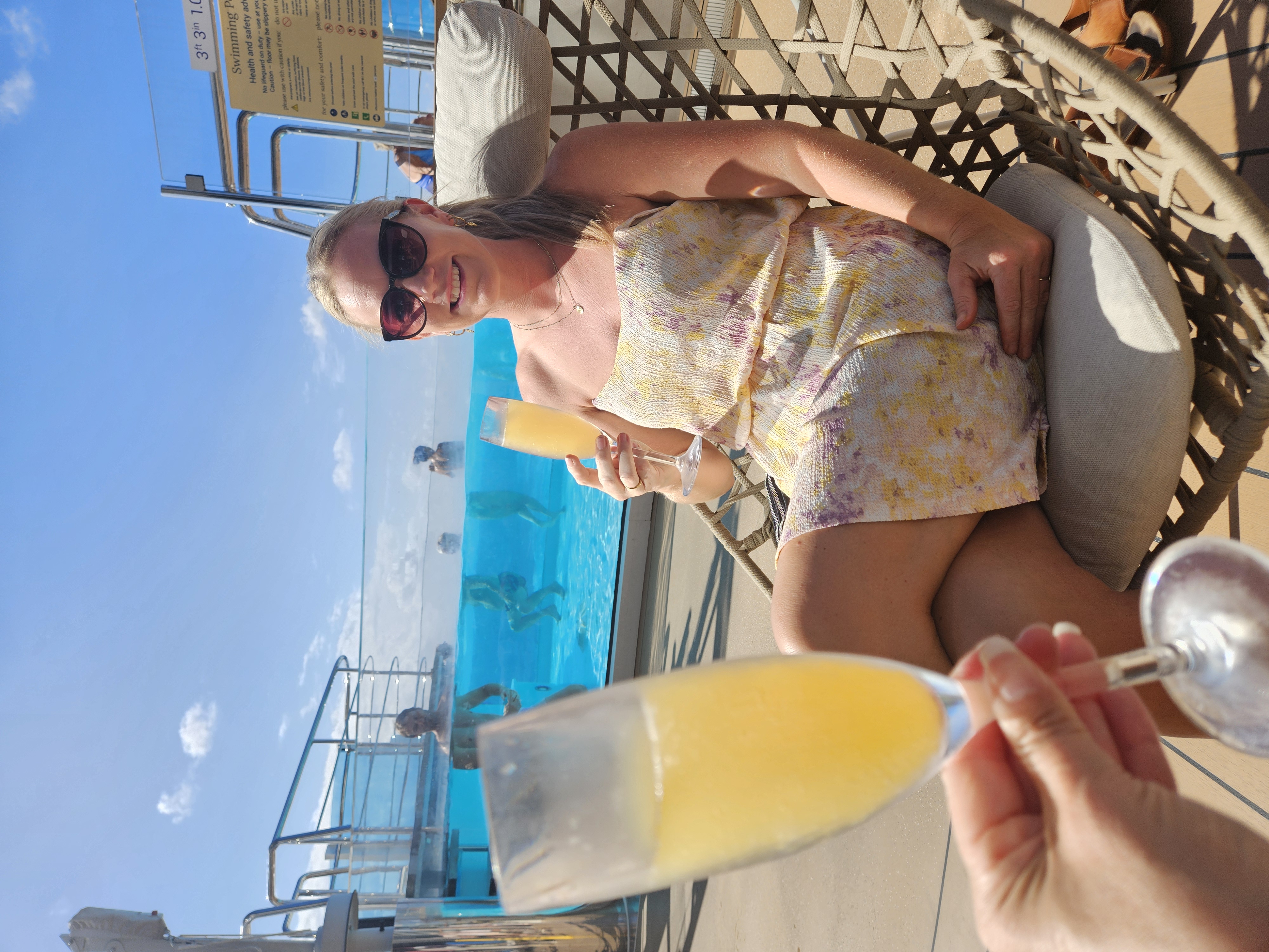 Stemningen hernede var mere rolig end ved hovedpoolen – perfekt, hvis du ønsker at nyde solen og havudsigten i fredelige omgivelser. Kombinationen af design, udsigt og atmosfære gjorde det til et af de mest afslappende steder på hele skibet.