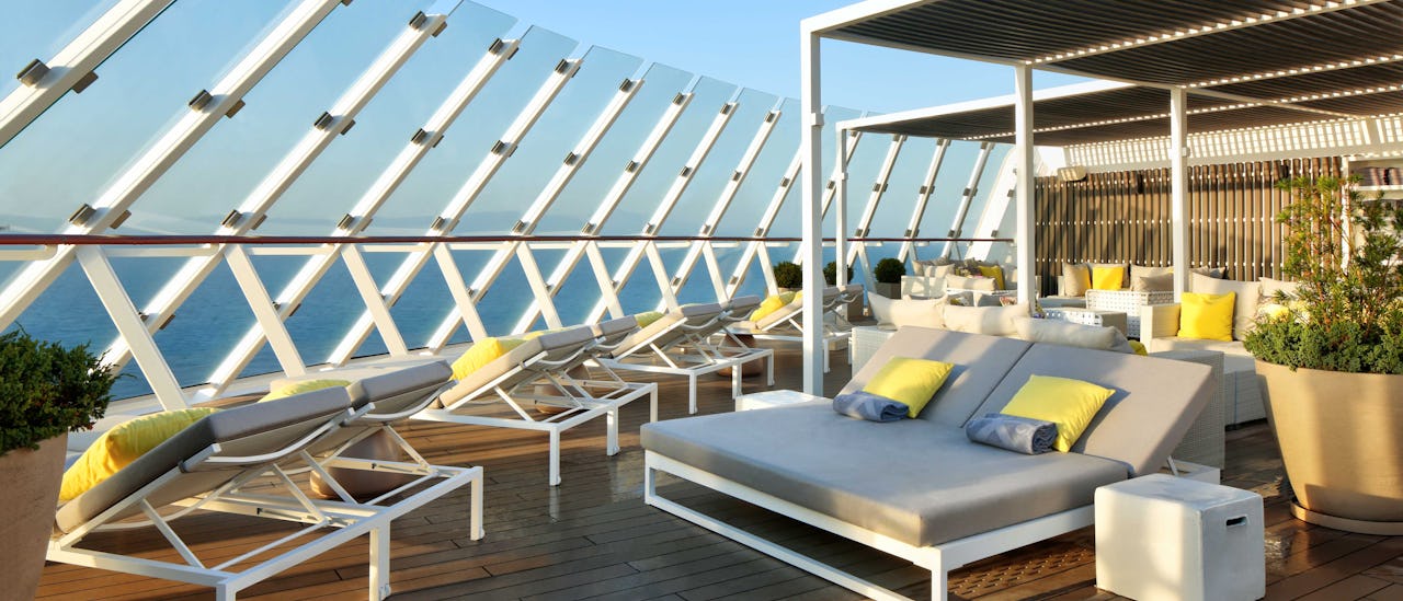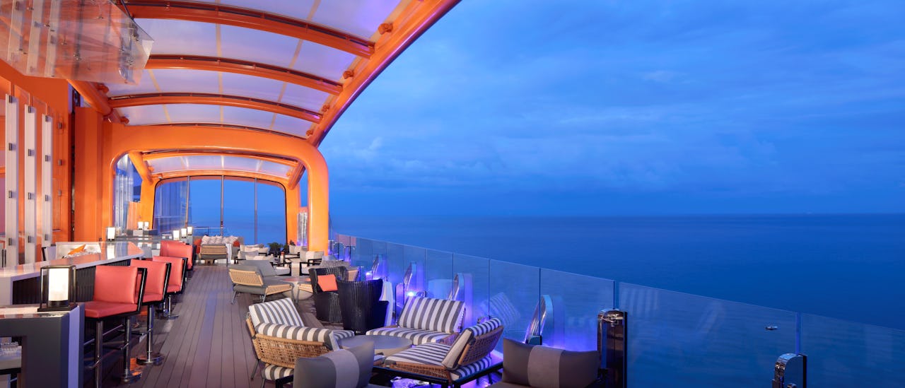 Læn dig tilbage på "Magic Carpet" - glasverandaen der skifter etager, søg efter spiseoplevelser og nyd en atmosfære, der er skabt af verdens førende interiørdesignere. Celebrity Apex er et stilfuldt, moderne og afslappende flydende feriested, der bringer moderne luksus til et nyt niveau. Perfekt til par!
