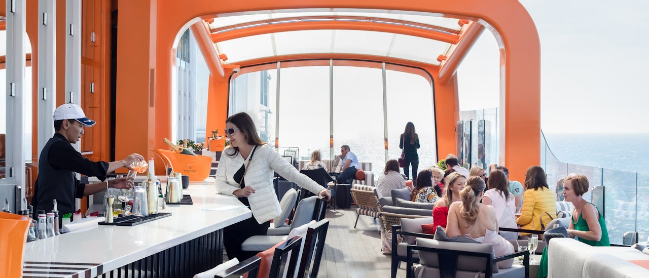 Læn dig tilbage på "Magic Carpet" - glasverandaen der skifter etager, søg efter spiseoplevelser og nyd en atmosfære, der er skabt af verdens førende interiørdesignere. Celebrity Egde er et stilfuldt, moderne og afslappende flydende feriested, der bringer moderne luksus til et nyt niveau. Perfekt til par!