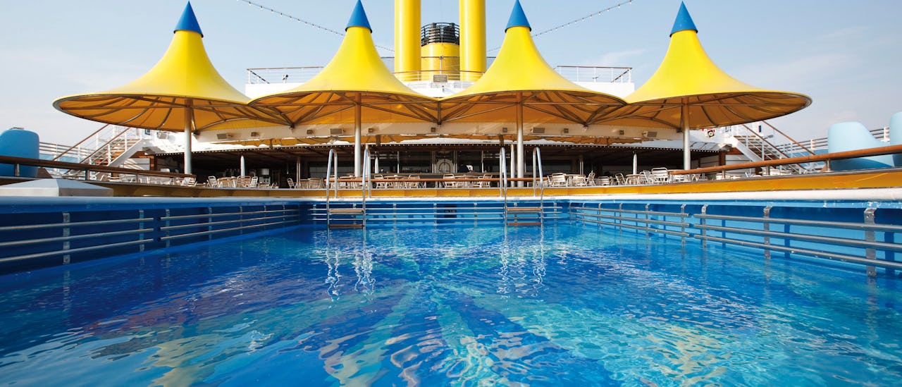 Sol, bad og nyd livet på pooldækket, der er inddelt i tre områder, hvor det ene har skydetag. Højst oppe, længst fremme frister Samsara spa med skøn afslapning.