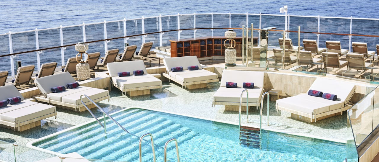 Generøse udendørs dæk der kan prale af mere end 2.500 kvm med en fantastisk udsigt over havet, med 64 private cabanas fordelt ved tre udendørs poolområder.
