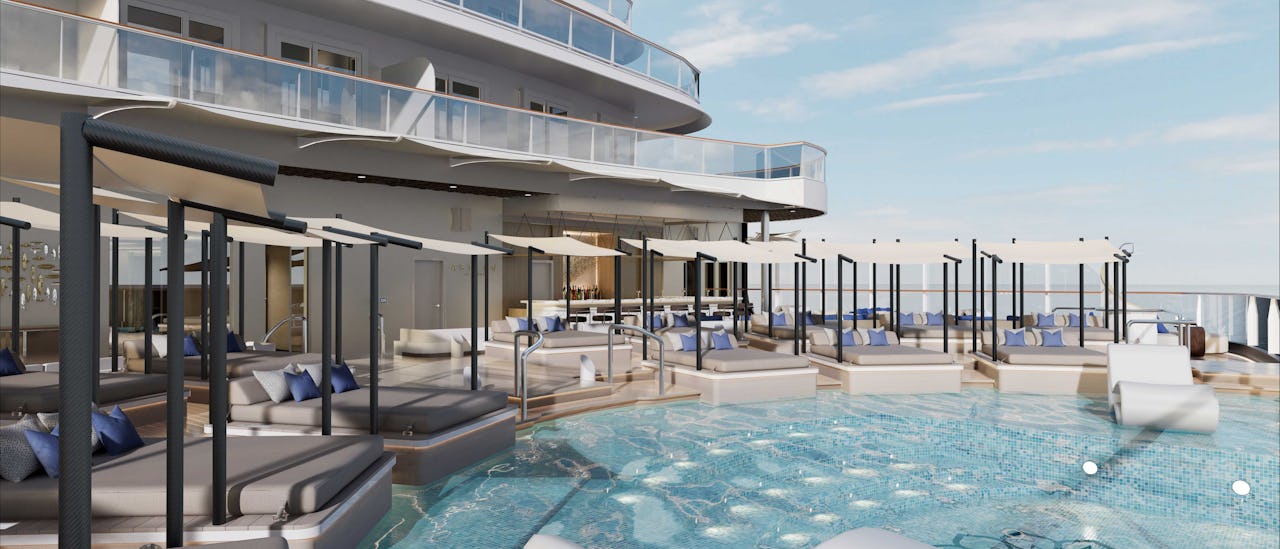 Generøse udendørs dæk der kan prale af mere end 2.500 kvm med en fantastisk udsigt over havet, med 64 private cabanas fordelt ved tre udendørs poolområder.