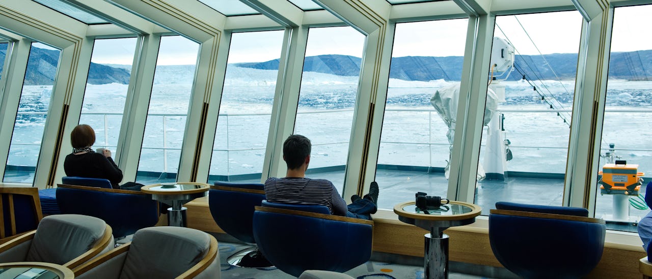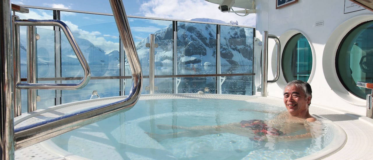 På dæk 7 ligger der et veludstyret fitnesslokale med panoramaudsigt og trapper op til en hyggelig sauna allerhøjest oppe. Nyd et skønt bad i en af de udendørs boblepools og lad det varme vand omslutte dig mens isbjergene glider stille forbi.