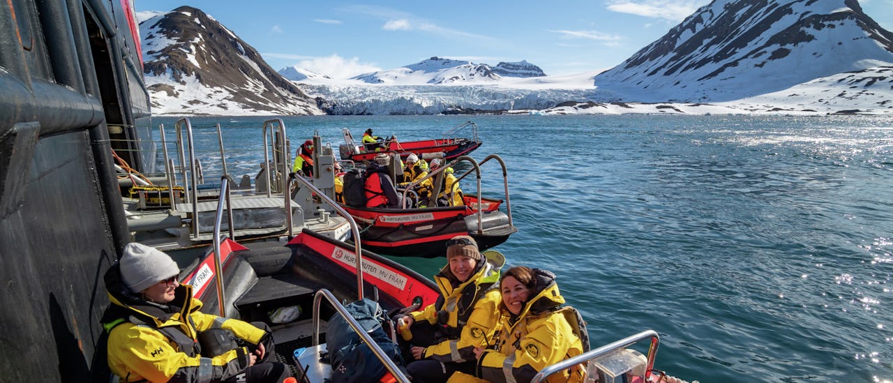 Fram har et fuldt udstyret dæk med ekspeditionsudstyr, og du kommer trygt og sikkert i land med stabile Polarcirkel-både.