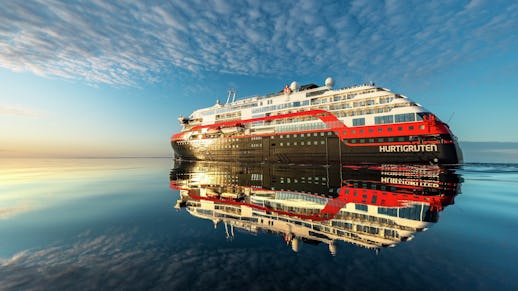 Lad næste generations ekspeditionsskib MS Roald Amundsen tage dig med til nogle af verdens mest spektakulære steder. Naturen genspejles i en smuk og bekvem indretning, hvor skandinaviske materialer som granit, birk og uld skaber en afslappende og elegant atmosfære.