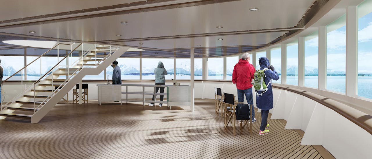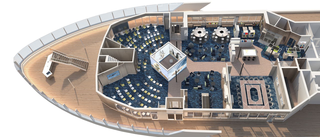 Slap af i den elegante Explorer-lounge efter en dag med udforskning i land, besøg spa-afdelingen eller nyd landskabet fra de store observationsdæk. Infinitypoolen, boblebassinerne og fitnesslokalet er nogle af højdepunkterne.