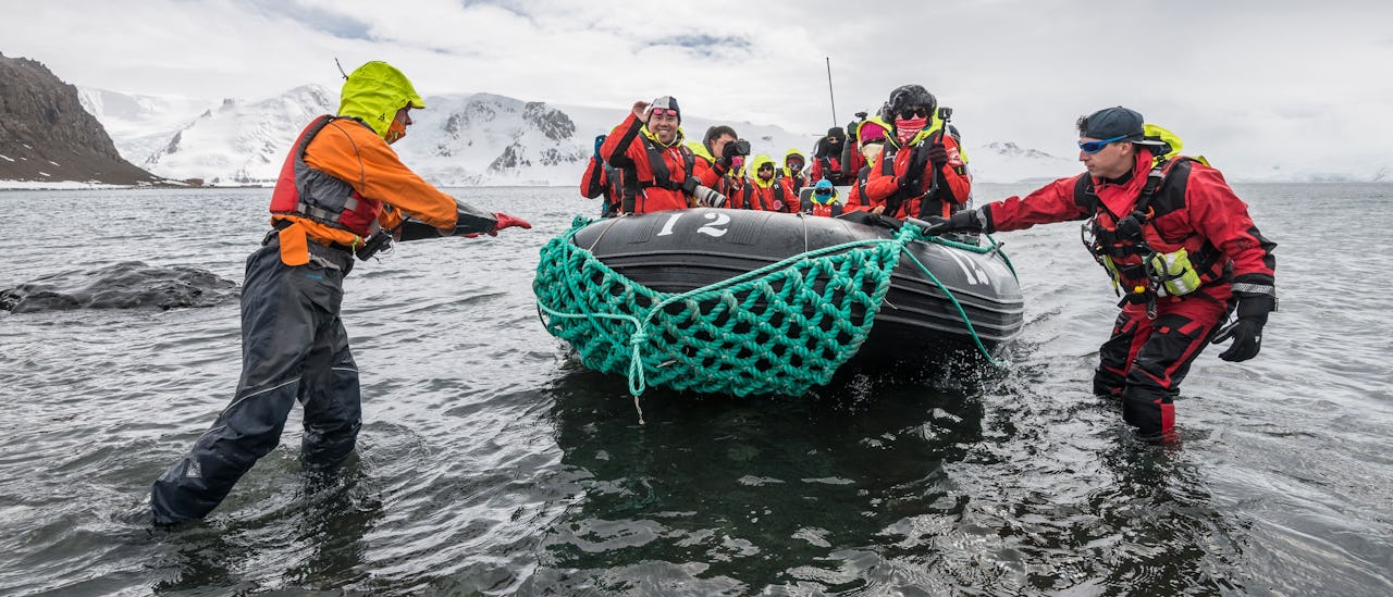 MS Roald Amundsen tilbyder en række specialtilpasset ekspeditionsudstyr, inkl. kajakker, Blueye undervandsdroner og mindre tenderbåde til landstigning i afsidesliggende områder.