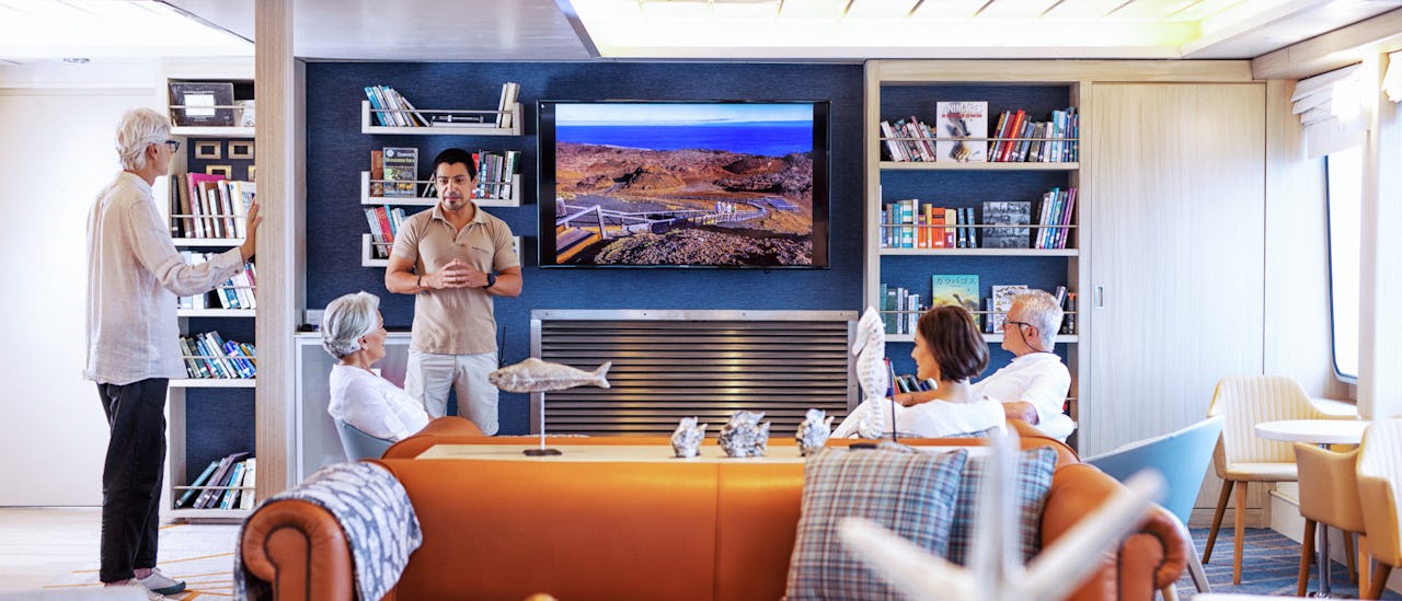 Ekspeditionsteamet ombord tilbyder spændende foredrag, præsentationer og aktiviteter. I Science center kan du lære mere om Galápagos-øerne, eller du kan møde de andre gæster på et af de mange dæk.