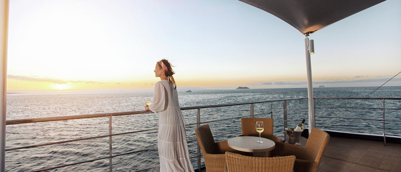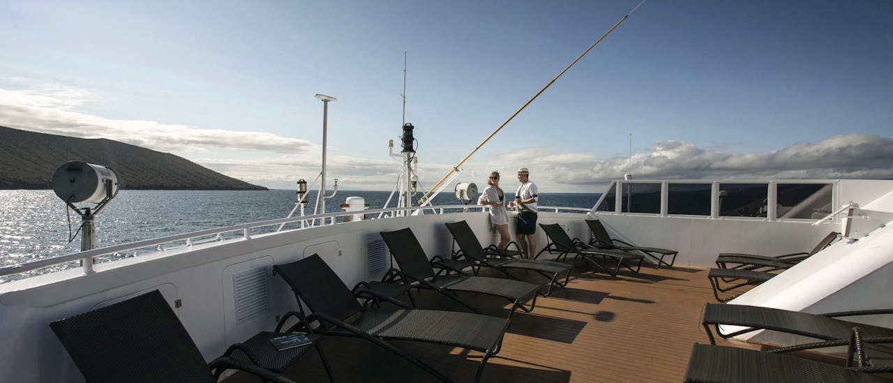 Expedition Veranda i fronten af skibet er et fantastisk sted når du skal beundre skønheden på Galápagos-øerne