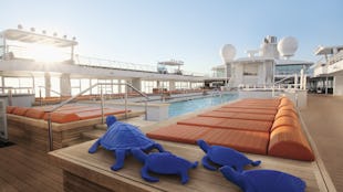 Why not start your day with a refreshing swim in the sparkling blue waters of the outdoor pool? The ship offers several sun and pool decks, each providing a peaceful view of the sea. For walking and running enthusiasts, there's also an open-air jogging track on deck, available at designated times. Plus, the ship offers a wide range of activities for the entire family to enjoy!