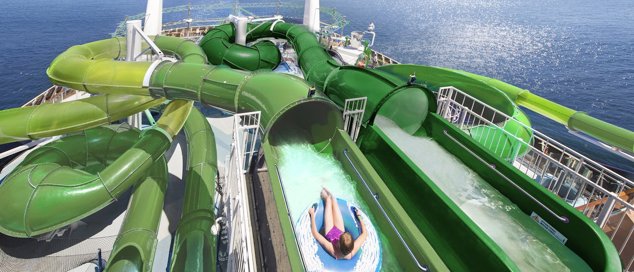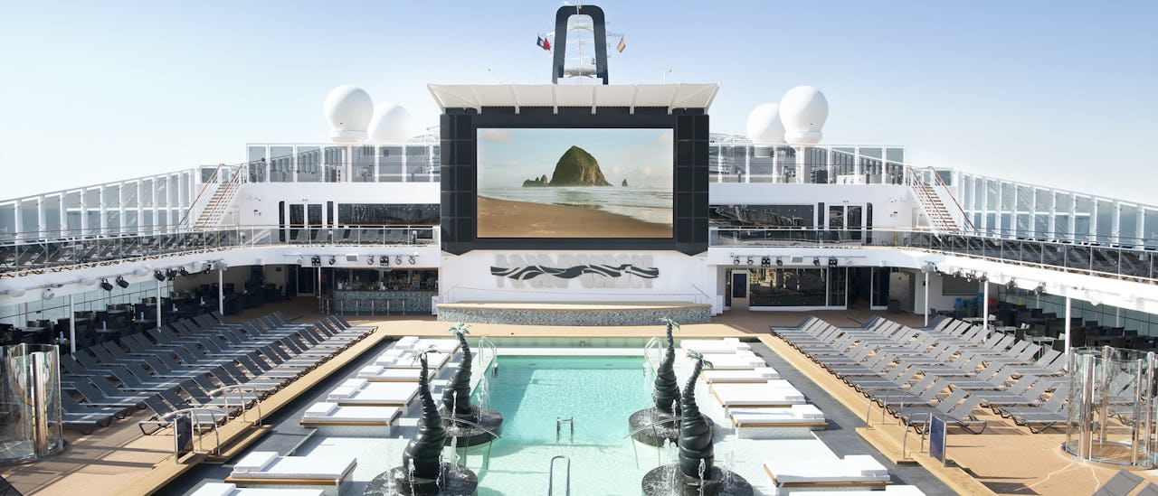 Pooldækket er opdelt i to områder med skønne pools, der er blandt de største til søs.