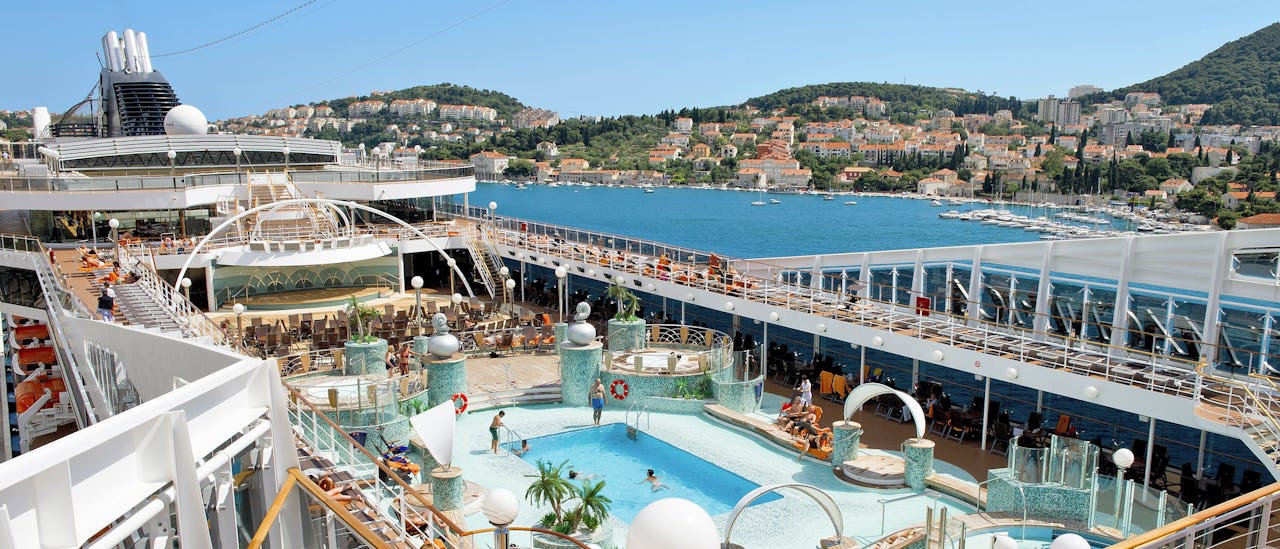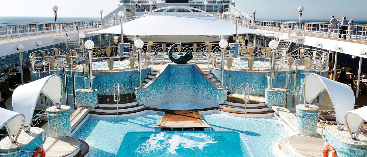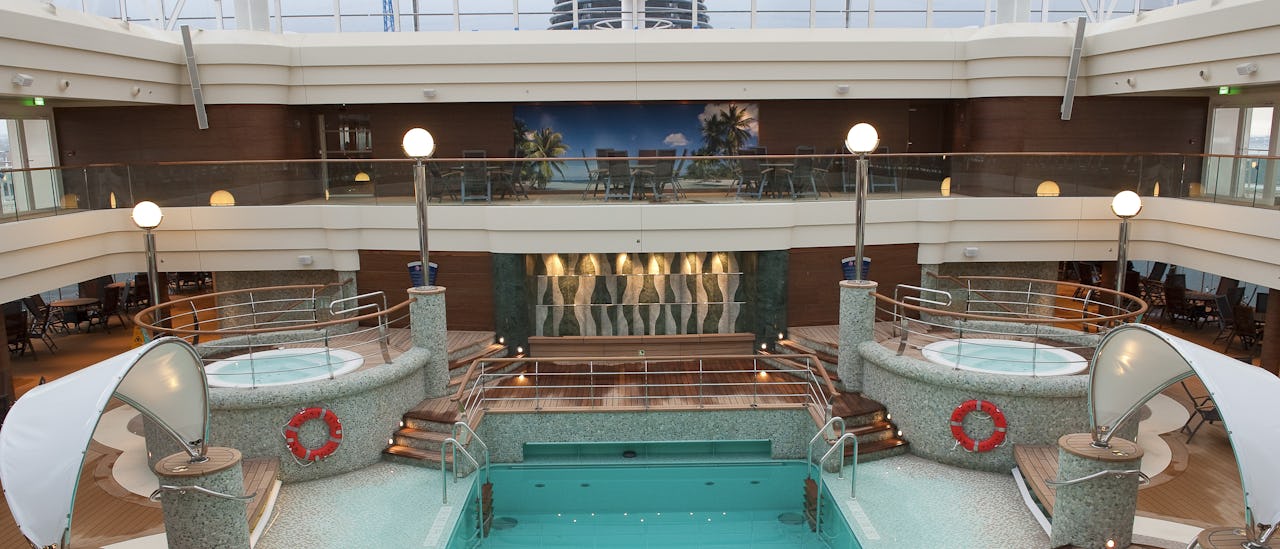 På pooldækket venter flere komfortable pools og jacuzzier samt filmvisning efter mørkets frembrud.