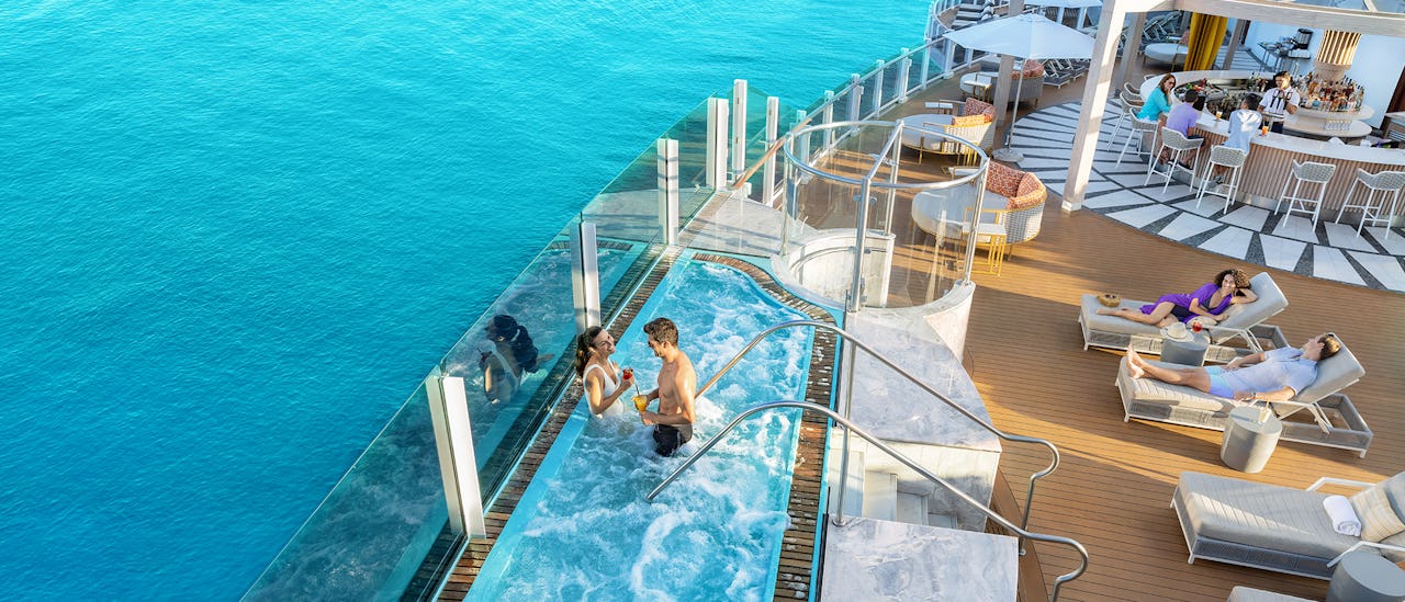 Læn dig tilbage, slap af og nyd den fantastiske udsigt i komfortable solsenge eller svøm hen til horisonten i et af infinitybassinerne. Eller gå en 360° tur langs den udvidede Ocean Boulevard og få oplevelser ud over det sædvanlige rundt om hvert et hjørne.