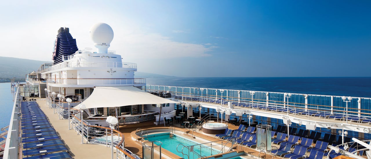 Højst oppe ligger pooldækket med en vandrutsjebane, flere pools og skønne solstole. Når vejret er smukt arrangeres en traditionel Hawaiiansk ”luau”.
