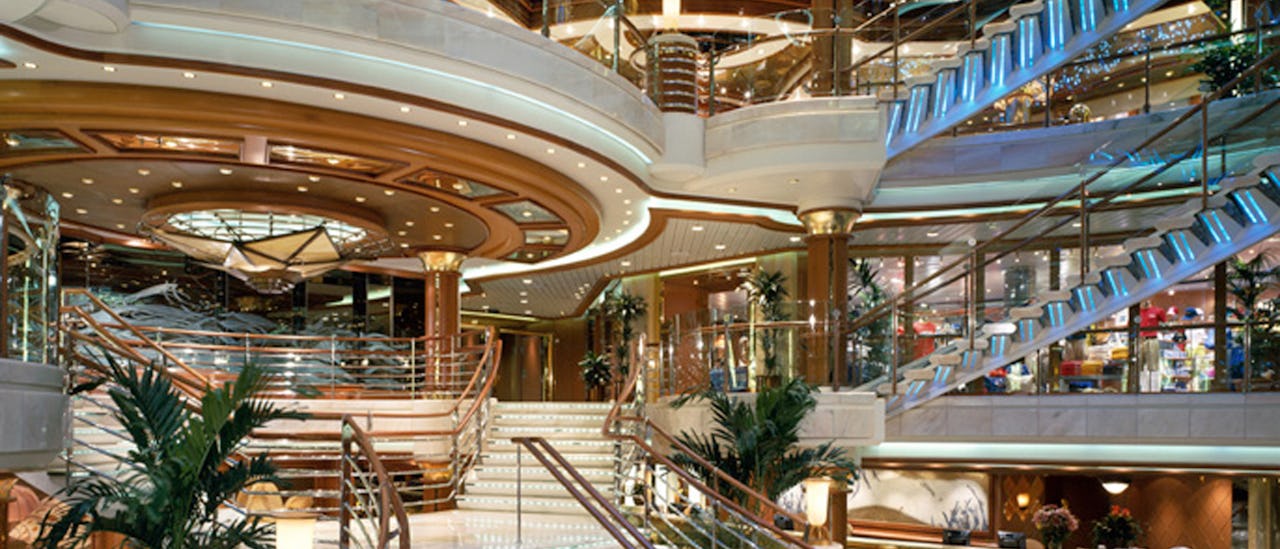 Besøg skibets omdrejningspunkt, The Piazza, et sted hvor der hele tiden er underholdning af jonglører, musikere og akrobater.