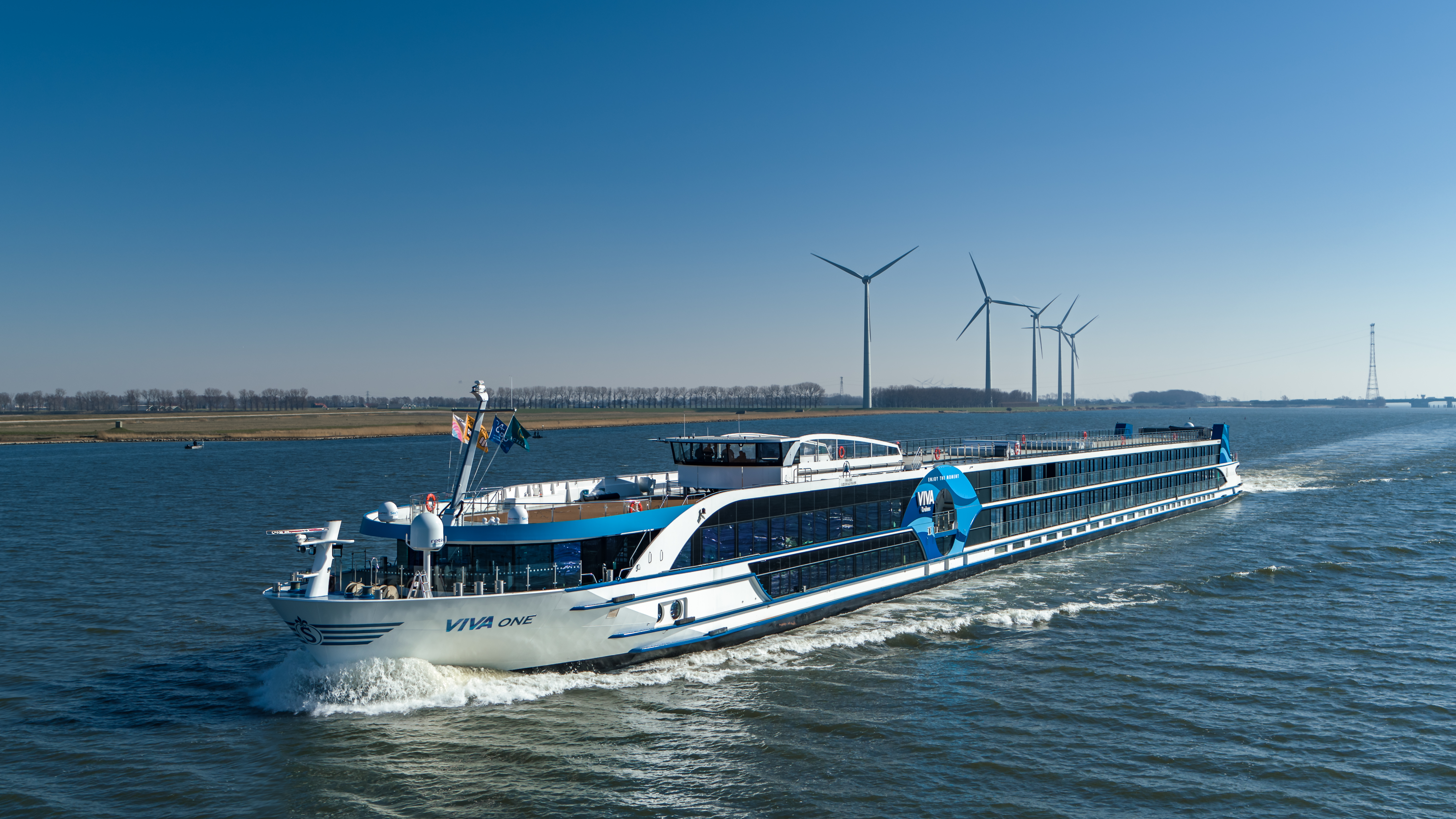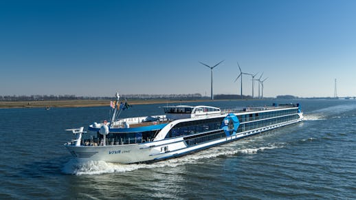 Nyd den luksuriøse atmosfære på et flodkrydstogt ombord på MS Viva One. Det helt nye og moderne skib vil sejle på floderne Rhinen og Mosel, og det er det første fartøj i VIVA Cruises flåde, der benytter topmoderne hybridteknik, der er bedre for miljøet.