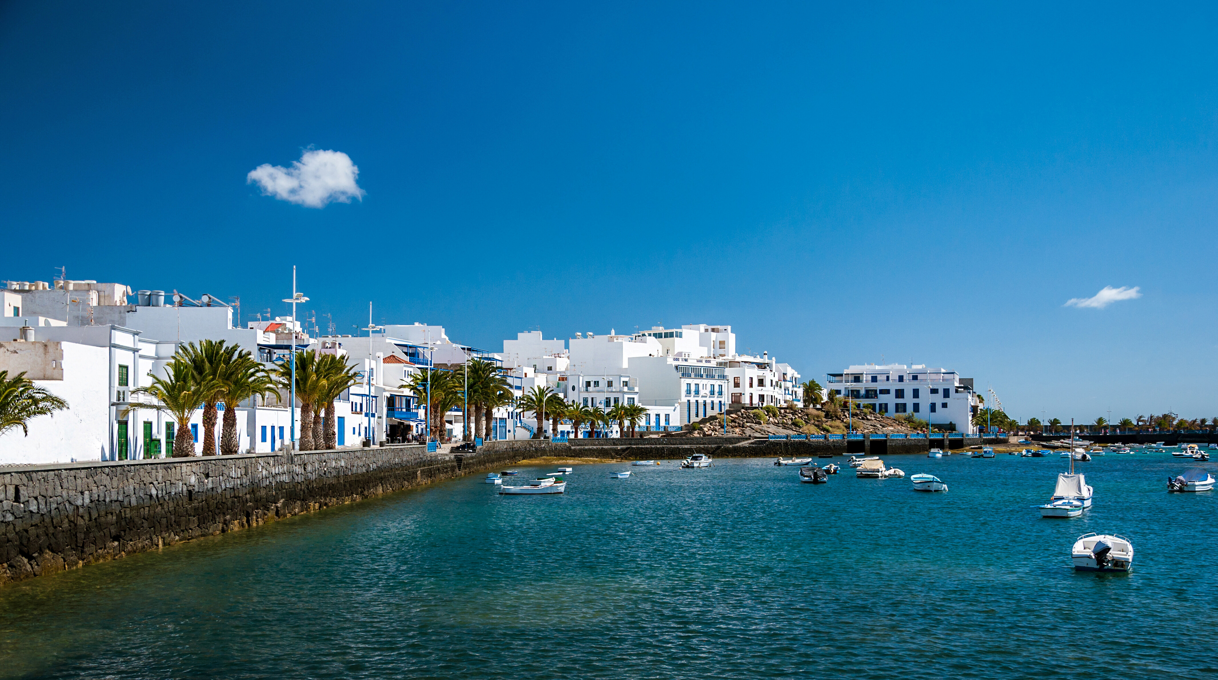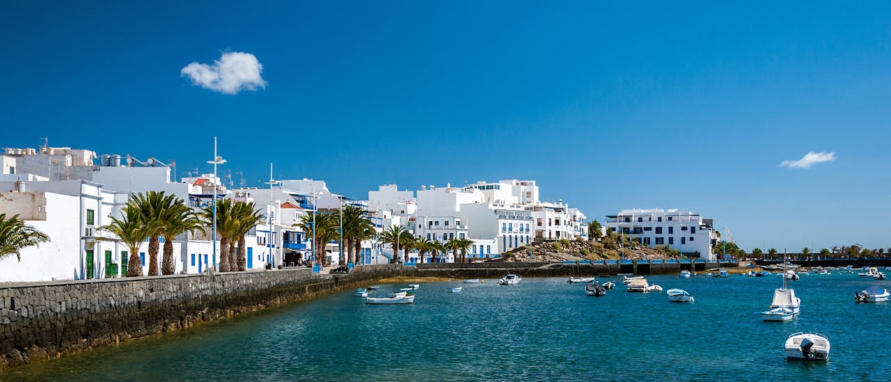 Sort lava, hvidkalkede huse og turkisblåt hav skaber en unik kulisse i Arrecife – en by, hvor Lanzarotes rå natur møder lokal kultur.